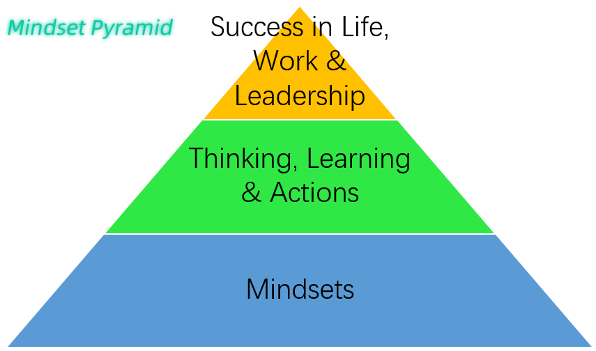 One image that had a significant impact on me is called the Mindset Pyramid. We can see that every day, we face three layers of issues. The bottom, the thickest layer is our mindset. The middle layer is our thinking, learning, and actions – our cognition. Success in life, work, and leadership sits at the top of our priorities.